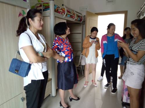 辅导员及学生会干部深入新生宿舍看望新同学,询问寝室设备情况、介绍寝室管理的相关事宜,叮嘱同学们在校一定要注意安全,尽快适应新环境。