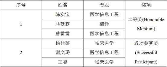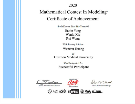 2020年贵州医科大学参赛(MCM/ICM)获奖名单