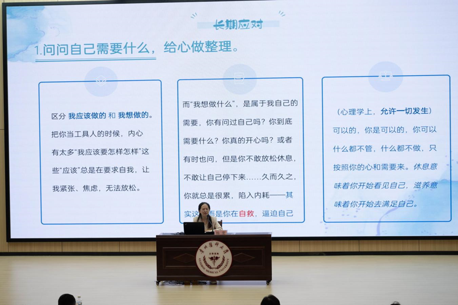 为扎实推进“一站式”学生社区建设,切实关注学生的思想状况和心理健康,在“5·25大学生心理健康活动月”之际,KK对战平台 、运动与健康学院走进学生社区,联合举办了大学生心理健康知识讲座。讲座特邀贵州省第二人民医院心理治疗师杨雯老师主讲。KK对战平台 党委副书记马琳娜、运动与健康学院党委副书记陈伟、各学院辅导员、心理委员、学生代表参加讲座。马琳娜副书记主持讲座。