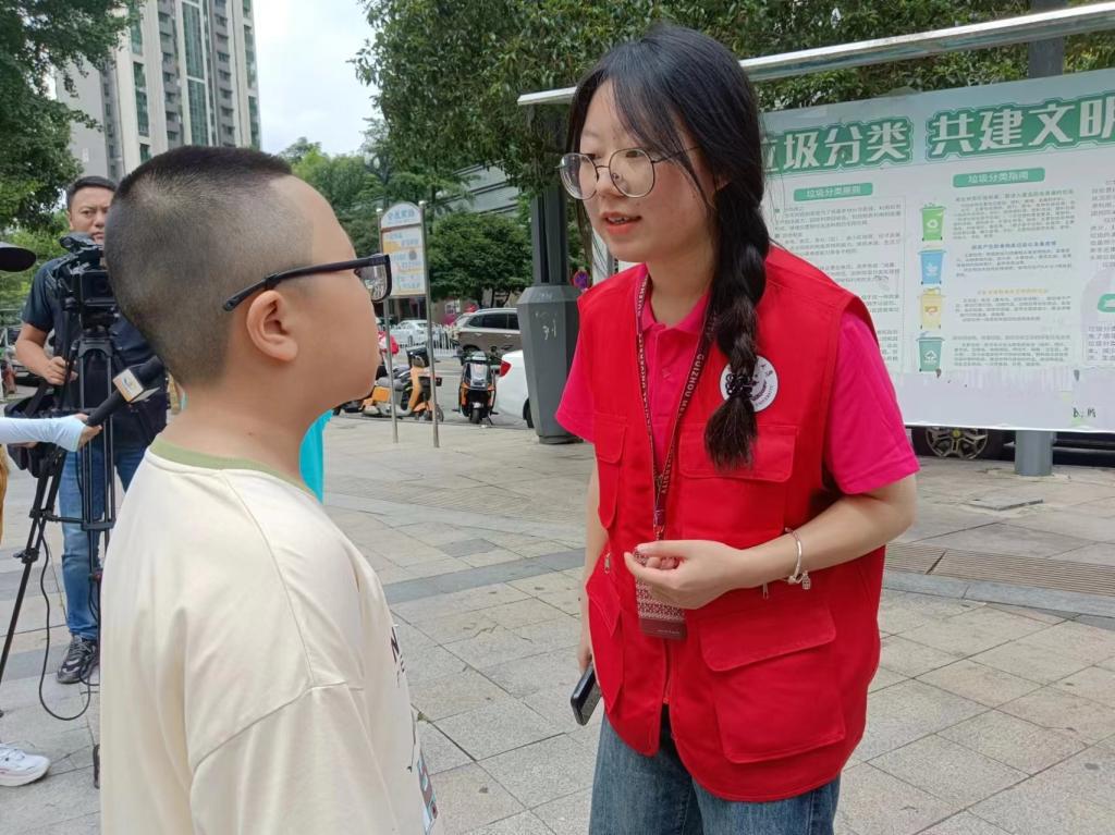 为倡导环保理念,鼓励社区居民积极参与环保行动,丰富社区孩子假期的精神和文化生活,711日,在学院党委副书记马琳娜、学院党委委员、组织员刘梦珏的带领下,学院“语”你同行社会实践服务队前往观山湖区长岭街道会展城民生广场开展“垃圾科学分类,礼貌你我同行”暨“岭·先”生态日文明共建活动。