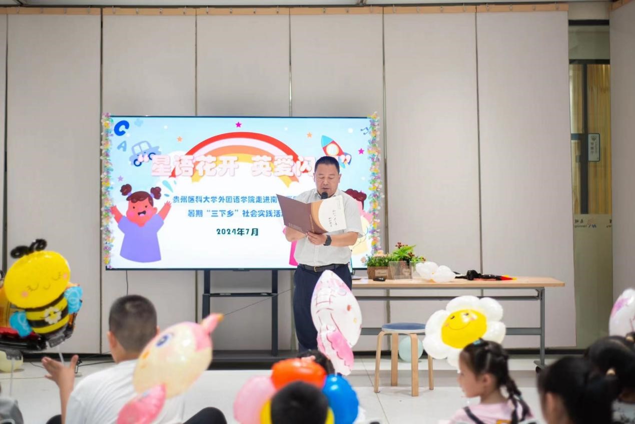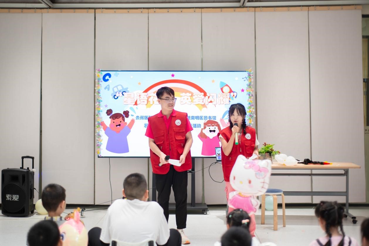 随后,实践队来到图书馆二楼活动室,以“星语花开 英爱闪耀”为主题,通过趣味儿童英语教学活动把知识和爱传递给南明区图书馆里的孩子们。