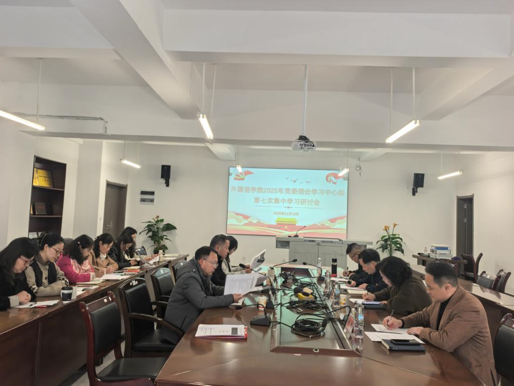 2025年党委理论学习中心组第七次集中学习会在云漫湖校区会议室召开,学院党委领导班子成员、副科级以上干部、各党支部书记、语言实验中心及各教研室负责人参加,会议由学院党委书记、院长付启宏主持,后勤管理处党总支委员、处长杨红宇,副书记、副处长周云蓉,党总支委员、副处长杨光,党总支委员、办公室主任赵杨列席旁听。