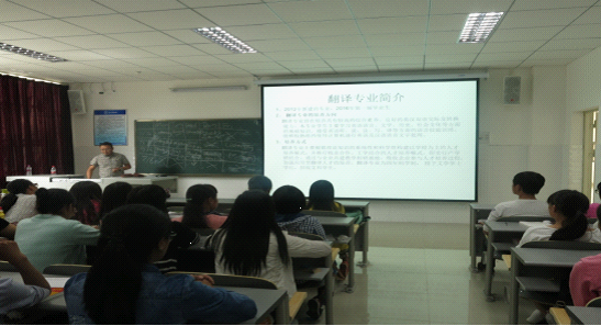 副院长付启宏以及英语系、翻译系主任乐萍、冉海勇两位老师为学生进行了专业教育,同时,辅导员老师对学生进行了安全教育。