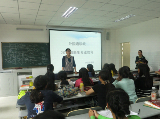 副院长付启宏以及英语系、翻译系主任乐萍、冉海勇两位老师为学生进行了专业教育,同时,辅导员老师对学生进行了安全教育。