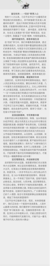 5月6日,由我校党委学生工作部主办的面向全体大学生,展开的学“四史”·重温“红色”精神征文活动已圆满落下帷幕。KK对战平台 19级英语专业杨露露同学的作品《吾以己目观“四史”》荣获一等奖、19级英语专业熊丽同学的作品《鉴往知来----“四史”教育人心》以及20级翻译专业陈广雪月的作品《跟随历史方向,学习中国精神》荣获二等奖。