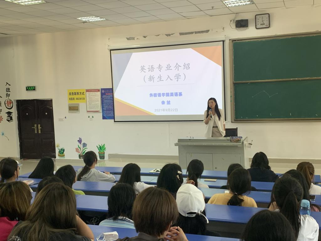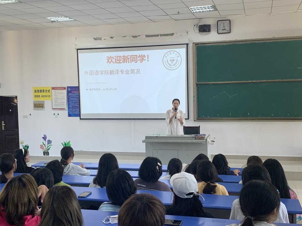 余兰、曾天娇老师分别从英语、翻译专业培养目标、课程设置、专业学习等问题进行讲解,鼓励全体新生要勤奋好学、积极进取,勇于实践,帮助新生更清晰地认识大学专业学习,全面提升专业能力。