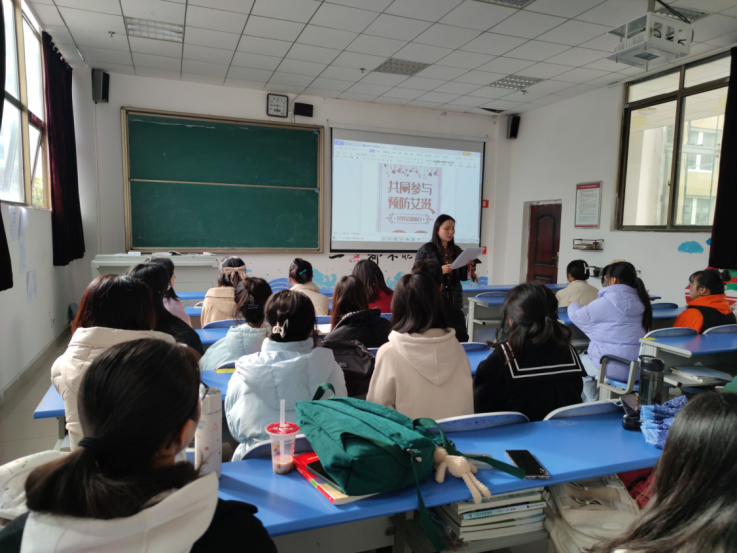 各年级辅导员进班级开展防艾宣传教育,通过倡议书、现场问答、游戏互动等方式,让学生正确认识艾滋病,从而以点带面向学生普及艾滋病知识,上好新生防艾第一课。