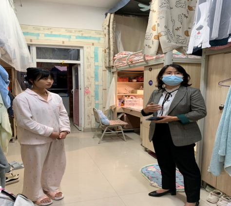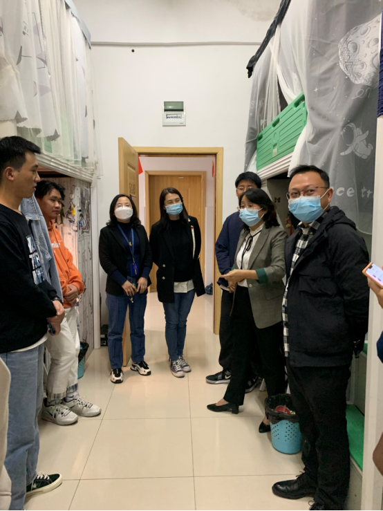 蒋红梅同志深入学生党支部,听取辅导员兼学生党支部书记黎文清同志工作汇报,了解学生党支部的工作开展情况,对学生党支部标准化规范化建设进行细致深入的指导,蒋红梅副校长特别询问了疫情防控期间辅导员的工作和生活情况,对辅导员的辛勤工作给予肯定和表扬。蒋红梅副校长走进学生寝室,与学生谈心,了解学生思想、心理、生活、就业等存在的问题,情真意切联系、实实在在联系,与学生交朋友,切实把思想政治工作做到学生的心坎上,把立德树人落实到具体行动中。教育指导学生学会做人、学会做事、学会学习、学会发展。