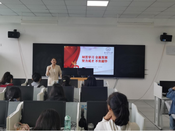 张婷婷书记以“刻苦学习 全面发展 努力成才 不负韶华”为主题展开了入学教育。她对新同学们提出了四个要求:一是厚植爱国情怀、勇担时代重任,以深厚的爱国之志作为立业之基,让蓬勃青春与家国情怀同频共振;二是学会学习,要合理利用资源,努力学习专业知识和相关技能;三、学会思考。大学生要具有独立思考和解决问题的能力,学会思考能够让我们受益匪浅;四是开拓进取、勇于创新,用知识武装自己,用能力证明自己,在创新中开拓进取。