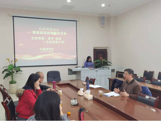 本次论证会由北京语言大学吴平教授主持。 专家们逐一听取四位拟申报课题教师的汇报,并针对每一个项目从前沿性、可行性、研究方法和撰写方法等方面给与评价和指导, 帮助申报者进一步理清思路、找准方向。