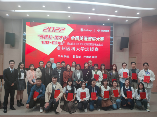 主办的2022年“外研社·国才杯”全国英语演讲比赛贵州医科大学校级选拔赛决赛在我校电教中心录播教室如期举行。作为教育部唯一纳入“中国高校创新人才培养暨学科竞赛评估项目”的英语竞赛活动,“外研社·国才杯”既是全国大学生展示创新风采和担当情怀的舞台,更是培养具有国际视野、传播中国声音的国际化人才的平台。