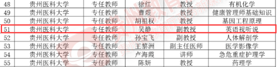 吴静副教授,主讲《英语视听说》课程,获评贵州省高校“金师”(教学名师)荣誉称号。