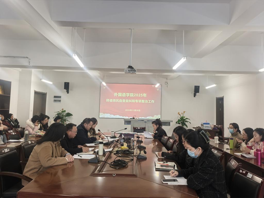 在云漫湖校区学院五楼会议室组织召开了2025年师德师风自查自纠和专项整治工作专题会议。会议由学院党委书记、院长付启宏主持,学院全体教职工参加。