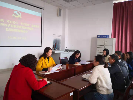 党委领导班子在广德楼六楼党员活动室举行“不忘初心、牢记使命”主题教育之领导班子对照党章党规找差距专题会议。会议由学院党委书记张婷婷主持。