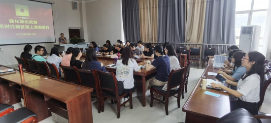 党委书记张婷婷同志在学院5楼会议室,以“强化理论武装,在新时代新征程上勇毅前行”为题给所在的教工党支部党员上党课,学院教工党支部全体党员参加。
