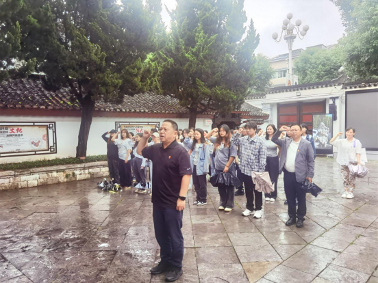 最后,在庄严肃穆的氛围中,学院党委书记院长付启宏同志带领全体党员,高举右拳,重温入党誓词。铿锵有力的誓言在故居上空回荡,表达了同志们不忘初心、牢记使命,为党的事业奋斗终身的坚定决心。