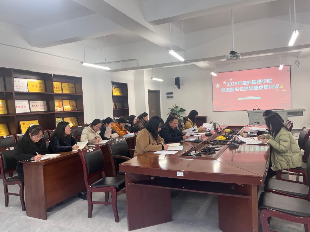 12月23日,为深入学习贯彻党的二十大及二十届历次全会精神,扎实做好基层党建工作,充分发挥基层党支部战斗堡垒作用,外国语学院在云漫湖校区学院会议室开展2025年度基层党支部书记抓支部党建述职评议考核,学校第三督导组组长钱禾、联络员保莎到会指导。会议由学院党委书记、院长付启宏主持,学院党委班子成员、组织员、全体支部书记、各党支部支委以及党员代表参加了会议。首先,付启宏同志宣读评议要求。接着,各党支部书记...